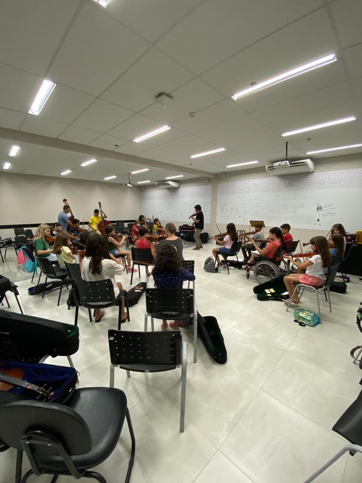 Hasta la edad de nueve años, los más pequeños tienen contacto con las clases de grabadoras, la musicalización de los niños, la percusión corporal y el coro. Y desde los nueve hasta los 12 años, ya están comenzando el experimento con instrumentos de orquesta, como violín, violonchelo, viola y contrabajo, que están disponibles con Scar.